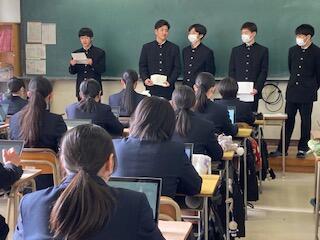 本日は1.2年生に向けて3年生の進路受験発表が行われました。