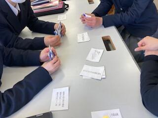インテリア科の専門授業でトランプゲーム?をしました。トランプゲームと言ってもカードには専門用語が記入されており、引いた生徒が答えていくものです。楽しく学ぶ。分からなければ各自調べるといった活動です。教科書全範囲から出題され、みんな真剣そのものでした。