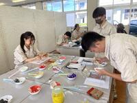 インテリア科の体験内容は「絵馬制作」と「ペン立て制作」で、在校生(3年生)とコミュニケーションを取りながら制作をしてもらいました。