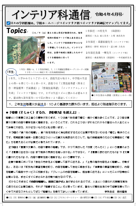 インテリア科生徒も気になるようで陰ながら応援しているのですが・・