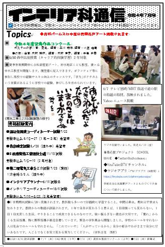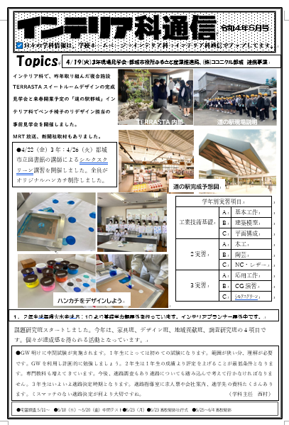 今年度インターンシップに代わる「ジョブシャドーウイング」にインテリア科は取り組みます。夏休みを利用して実施