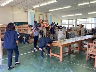 来春リニューアルする都城「道の駅」のPR企画で、地元小学生を対象に木工教室を、インテリア科+都城地区木材壮年会、ココニクル都城で行いました。この様子はMRTにて放映されました。