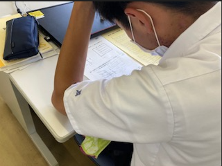 3年生は夏休み返上で履歴書作成行っています。