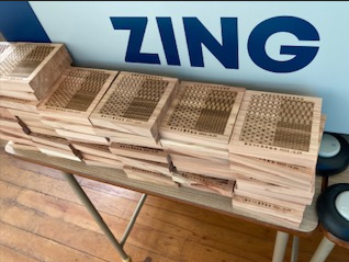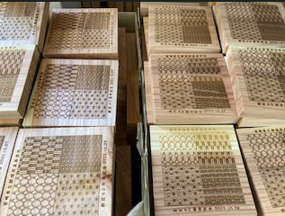 今回、近隣高校から依頼のあった創立記念品制作依頼を受け、制作真っ最中です。学校敷地内の倒木を再利用し新たな記念品を製作。製材加工し、デザイン、レーザー加工まで行います。出来上がり楽しみです。