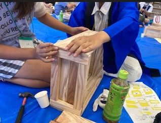 インテリア技術部の生徒もサポートし参加賞のミニまな板をプレゼントしました。
