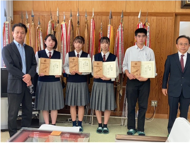 建築士会都城支部 支部長さま、支部青年部長さまが来校し、校長室にて表彰式をおこないました。