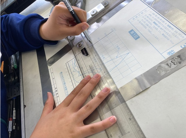インテリア科1年製図で本日、トレース検定を実施しています。