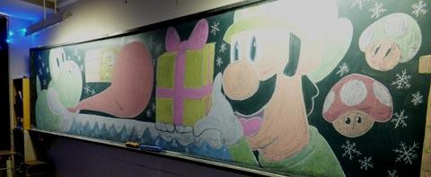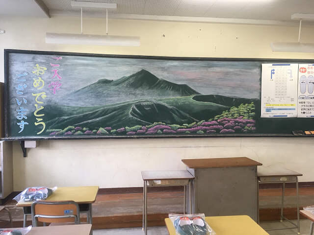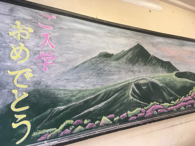 今年も、伝統の黒板アートで新入生を迎えました。前々日よりインテリア技術部の生徒を中心に遅くまで取り組みました。