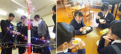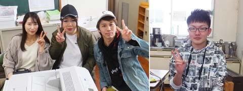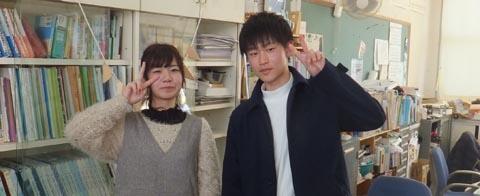 お正月前の帰省で、卒業生たちが職員室に顔を出しに来てくれます。写真左の丸山さんは東京の専門学校で保育についての学習を、右の渕上君は同じく東京で、内装施工管理を頑張っています。丸山さんは都会での生活に、最初は戸惑ったものの、最近ようやく馴染んできたとのことでした。渕上君はハードな職場ながら、やりがいのある一流の仕事に恵まれ、充実した表情が印象的でした。変わらない2人に安心しました。