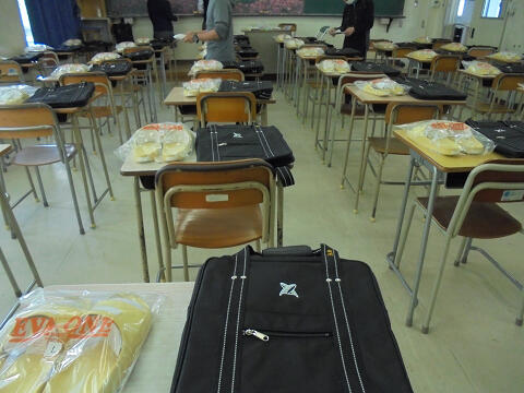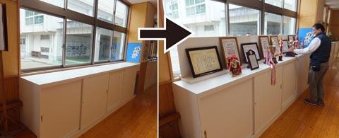 五十市中学校に賞状立て家具を設置