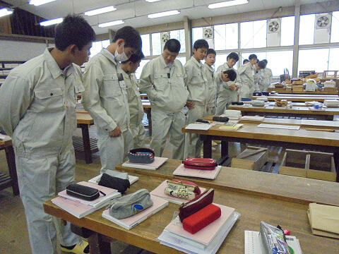 NPO法人「あなたの街の応援団」の榎木理事長様からの依頼で、本立てを寄贈いたしました。お金のかからないモノづくりの依頼だったので、実習で製作する見本部材を再利用することで「本立て」に生まれ変わらせました。最後はインテリア科生徒が鉋仕上を施しました。理事長様も大変喜んでくださり、お礼に手作りの水引を頂戴しました。モノづくりでモノづくりのお返しをいただけるなんてちょっと素敵です。ありがとうございました。