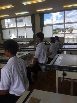 1年生は、工業高校に入学し初めての製図の授業が本格的にスタートしました。