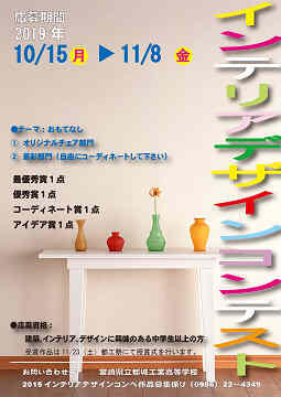 1年インテリア科担任の南先生から1年生の展示部門を通信にアップしてくれないかとの要望がありました。理由は病気療養で文化祭に参加できなかった生徒のために 文化祭の様子を少しでも伝えてあげたいから・・とのこと。管理人は思わずその思いにグッと来たので1年生の様子を多めにアップしています。ご了承ください。