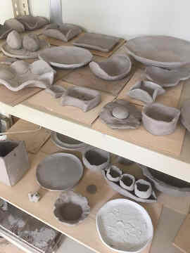 2年実習は、木工塗装、家具製図、陶芸