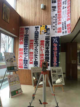 五十市中学校の玉利校長先生からの依頼で、中学校の廊下脇の棚上に「賞状額受け家具」を設置しました。L字型の木製額受け装置で、材料費と塗料を中学校側からいただいて設計及び製作をインテリア科が担当しました。中学校の先生方からも喜んでいただけました。