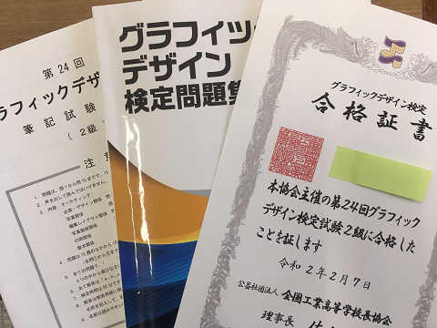 ●計算技術検定3級●パソコン利用技術検定3級●初級CAD検定●グラフィックデザイン検定2級●国家技能検定(3級広告美術仕上げ/広告面粘着シート仕上げ)●国家技能検定(3級家具製作/家具手加工作業)●色彩検定●2級建築施工管理技術検定●トレース技能検定●有機溶剤特別講習●アーク溶接等の業務特別教育●ガス溶接技能講習●高校生ものデザインコンテスト(優良賞)●高校生ものづくりコンテスト(地区入賞)等になります。その他、さまざまな資格にチャレンジしてます。絵文字:鉛筆