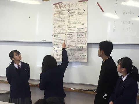 求人票や企業パンフレットの情報を模造紙に分かりやすく表現し発表しました。
