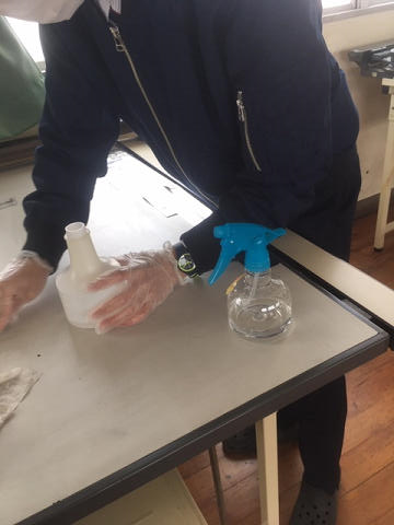 本日、インテリア科では学科職員全員で、各教室及び更衣室、機械や工具、扉や窓、スイッチの触れる場所の消毒を行いました。学校再開に向け、準備してます。