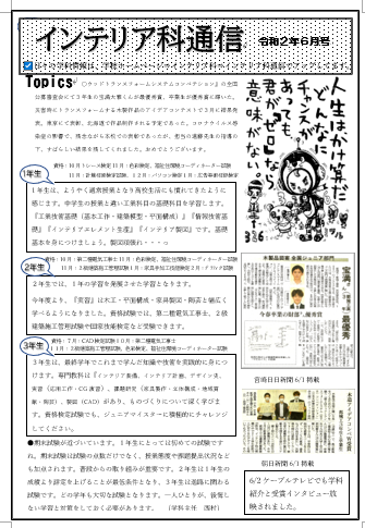休校中のインテリア1年生の専門課題の紹介です。