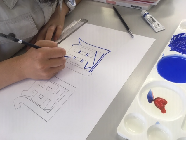 平面構成:レタリングに挑戦中。完成楽しみです。