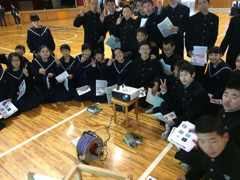 都工では市内の中学校向けの出前授業を行っています。6学科の先生方がものづくりの玉手箱を持ち込んで中学生の皆さんに楽しく愉快な授業を展開します。今年も多くの中学校からの依頼で各地での出前授業実施予定です。先月12月16日には五十市中学校にお呼ばれして、インテリア科は「色とデザインのふしぎ」というタイトルで1年生の皆さんに授業してきました。興味深そうに聴いてくれました。❤