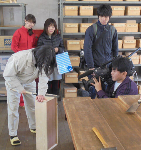 UMK放送局”のびよ みやざきっ子”で都工が取材されました。女子アナウンサーが飫肥杉プロジェクトの授業や、ものづくり実習を生徒と一緒に体験しました。生徒も緊張の中 無事取材が行われました。イルミネーション関連の放送もあるようです。  1月28日(土)10:30~11:00に放映予定です。是非ご覧下さい!。