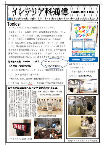 インテリア科では、内装業に就職希望も多くリフォームなどで、コンセントや照明移動することも多いことから近年、受験希望者が多くなっています。