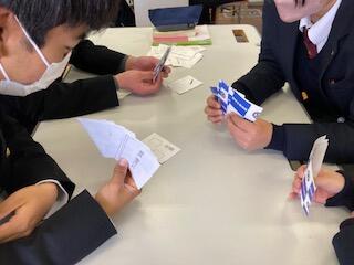 インテリア科の専門授業でトランプゲーム?をしました。トランプゲームと言ってもカードには専門用語が記入されており、引いた生徒が答えていくものです。楽しく学ぶ。分からなければ各自調べるといった活動です。教科書全範囲から出題され、みんな真剣そのものでした。