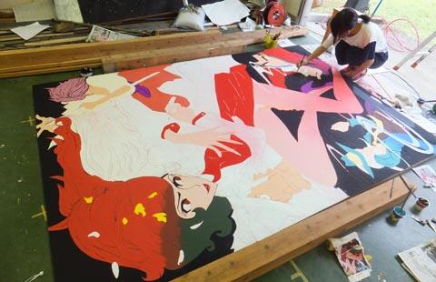 3年生が夏休み中に体育大会マスコットを製作します。畳3枚分の大きな画面に、インテリア科のデザインの力を発揮して、団の志気を高めます。今年のモチーフはアニメ「ルパン3世」です。 花堂さんと原口君の2人を中心に今年もレベルの高い作品が仕上がりそうです。途中経過をちょっとお見せします。