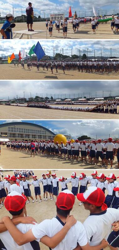 体育祭が9月1日に実施されます。それに備えて今学校では猛練習中。下の写真は決して悪い事した生徒達が土下座して謝っている姿ではありません(笑)。3年生男子が後輩達に都工体操の見本を見せている様子です。暑い最中、泥や砂にまみれて生徒達は頑張っています。
