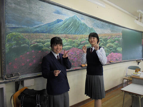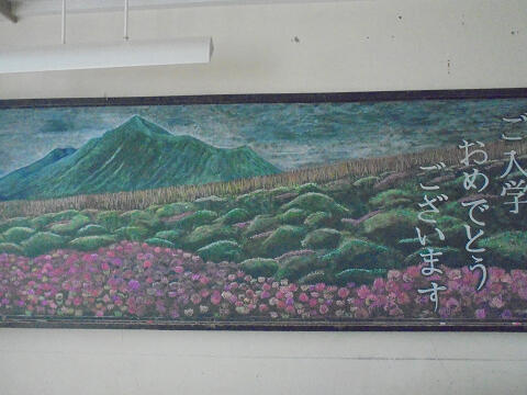 今年も、伝統の黒板アートで新入生を迎えました。前々日よりインテリア技術部の生徒を中心に遅くまで取り組みました。