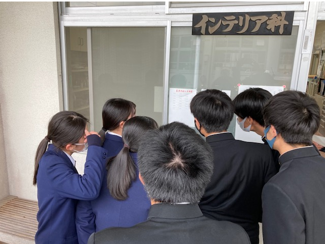 第63回入学式が行われ、インテリア科は恒例の黒板アートで新入生を迎えました。