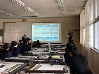 1年製図の時間も残りわずかとなりました。本日2年製図課題の説明を行いました。2年生は具体的な住宅設計となります。7月には建築士会の先生を招きコンテストも実施されます。時間内作図と指定された課題を仕上げていくことになります。基本的な流れや作図法について説明しました。