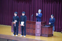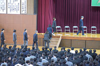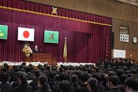 入学者代表宣誓:本校の生徒として校訓 自立・友愛・創造の精神を大切にし勉学と部活動を両立させ有意義な高校生活を送りたいと思います。