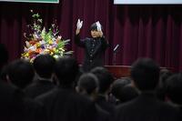 校長式辞:入学おめでとうございます。卒業するまでに身につけて欲しい「3つの力」についてお話します。1つ目は良き習慣。時を守り、場を清め、礼を正す。社会生活の基本が当たり前の習慣となるよう日々努めてください。2つ目は利他のこころ。他者の幸せや助けになる事を目指した考え方です。現代の社会ではこの考え方がとても大切だと言われています。3つ目は専門性。本校で志を持ち、より高い技術を身に着け磨いてほしいものです。