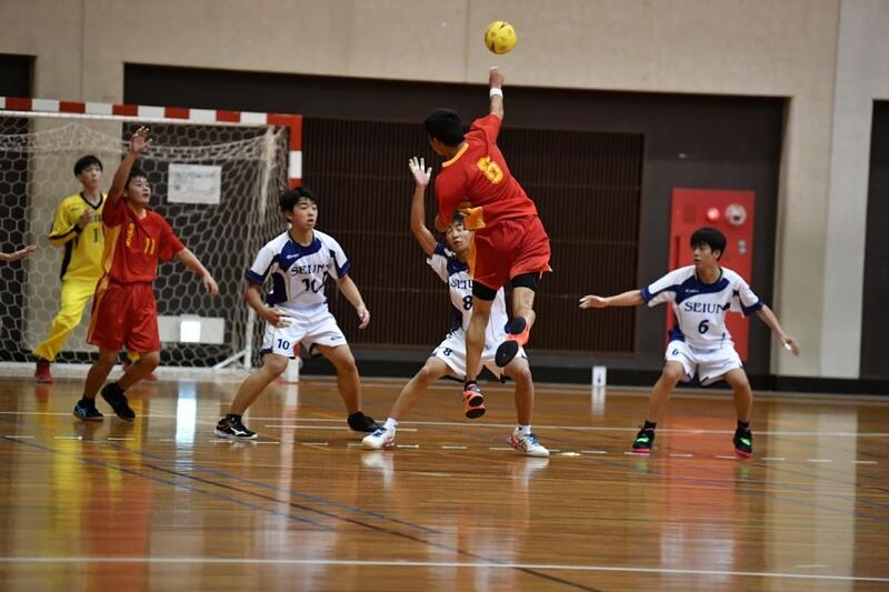 本校ハンドボール部は、予選リーグを勝ち進み、決勝トーナメント1回戦にて延岡高校に17-3で圧勝。