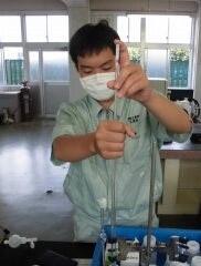 化学工業科では、2年生の実習で”密度の測定”、”粘度の測定”、”表面張力の測定”を行っています。