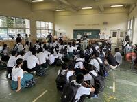 ②学科職員が大勢の生徒に講話をする練習