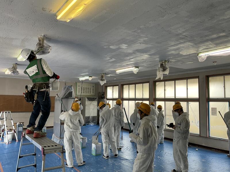 11月16日(木)に2年生を対象とした塗装体験教室が行われました。今回の体験教室で塗装した場所は、都工会館の食堂エリアと学科棟の製図室の2箇所で、どちらも経年劣化による色落ちや塗装の剥がれが多く見受けられました。