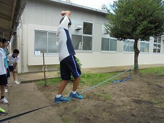 今日は、日頃の練習成果を発表する校内ボルダリング、スラックライン大会。