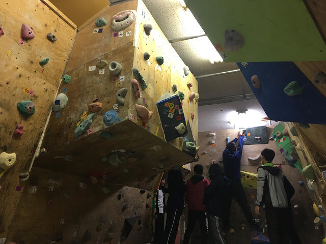 狭い校内ボルダリング場と違い、広さ、高さ、さまざまなホールド、ルートもあり、体力の限界までチャレンジしました。