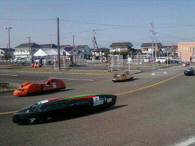 昨日、宮崎市の自動車学校特設コースで「エコ電気自動車レース」が行われ、