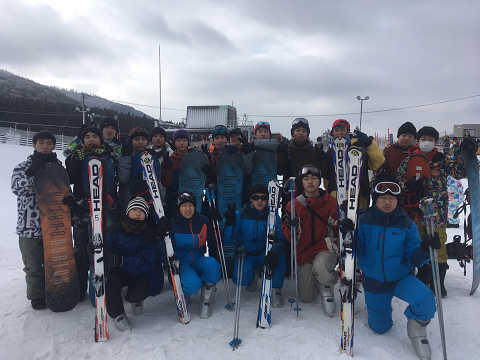 毎年恒例の九重スキースノボ体験を行いました。暖冬の影響で雪少なめでしたが、充分楽しめました。