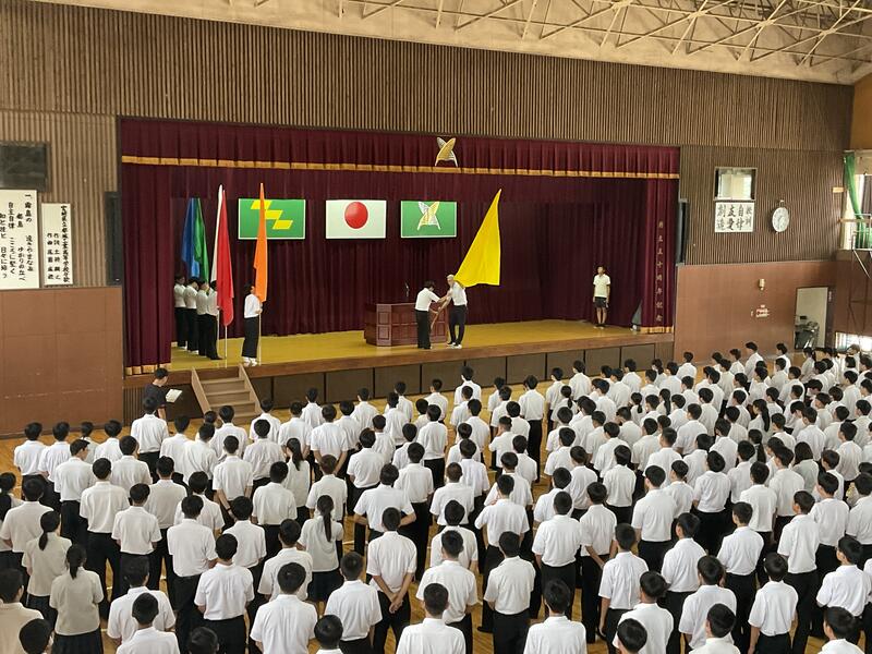 教頭先生から各団の団長へ団旗が授与され、その後各学科に分かれてリーダーや団長からの決意表明がありました。