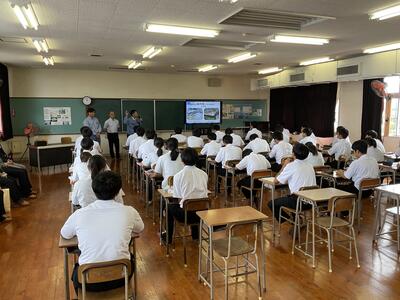 建設システム科では、都城市内外より4社の企業様にお越しいただき、各会社の説明や建設業の魅力を伝えていただきました。