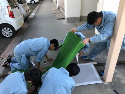 今年度は化学工業科とテニスコートの間に設置しています。