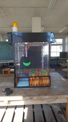 Arduinoを使ってプログラミングし、動作を制御するクレーンゲームを製作しました。3DCADで図面をかき、3Dプリンタ、旋盤、フライス盤などで部品を作りました。Bluetoothで接続し、ゲームコントローラーで操作します。