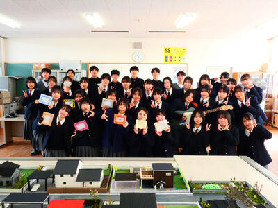 インテリア科では陶芸班、木工班、家具班、デザイン班、地域貢献班、住宅模型班に分かれ、自ら課題を見つけ研究する難しさや面白さを発表してくれました。