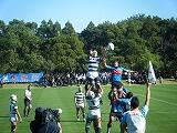 前半10分、目標にしていたトライをあげ、選手、監督、保護者全員が大喜びしました。