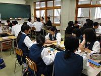 全体会の後は,教室に移動して西高の先生による模擬授業を受けました。